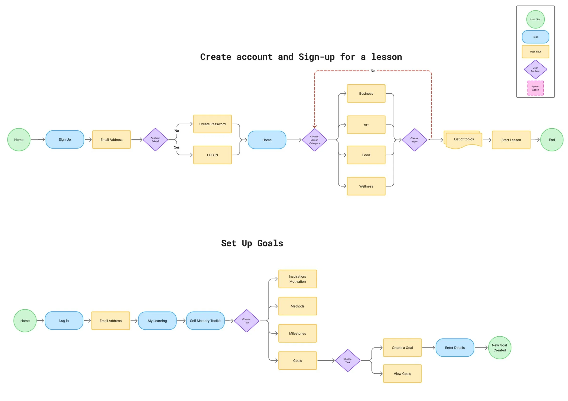To finalize the prototype, I conducted usability testing with five participants from diverse backgrounds. The goal was to assess whether users could efficiently complete key tasks, such as creating a new goal and accessing the Practice Lab. All participants successfully completed the tasks, but their feedback revealed several opportunities to enhance the user experience. Based on their insights, I made targeted updates to improve clarity, consistency, and navigation across the site.