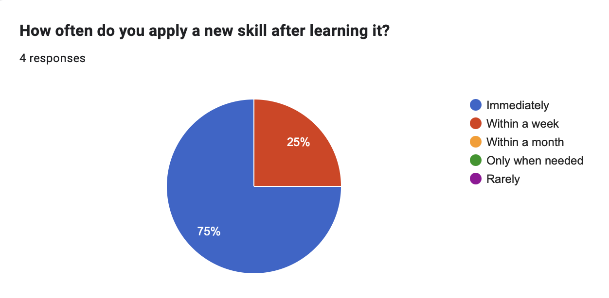 “For me, it works better if there are short tutorials followed by a hands-on exercise. In case I am having difficulty applying the skill, I would prefer to have direct contact with a mentor and like minded peers who are learning the same thing as me.”