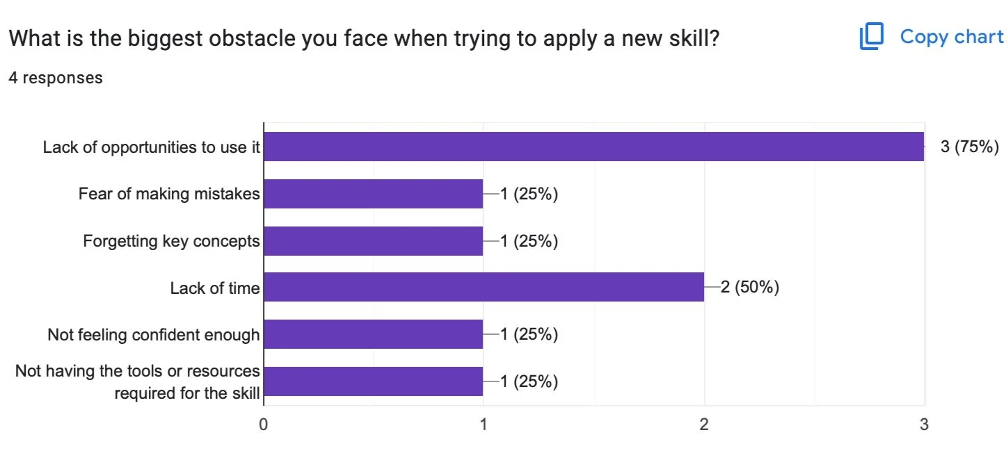SkillSpace is currently in a strong place, with a clear structure, intentional design decisions, and features that directly address user needs. Still, there are exciting opportunities for growth. What if users could track progress through personalized dashboards? What if micro-challenges adapted to skill level and learning goals? Could deeper community features enhance motivation and connection? While these ideas didn’t make it into the final version, they’ve inspired valuable insights that I’ll carry forward into future projects. For now, I’m proud of what SkillSpace has become—a foundation for skill-building that’s simple, approachable, and designed with purpose.