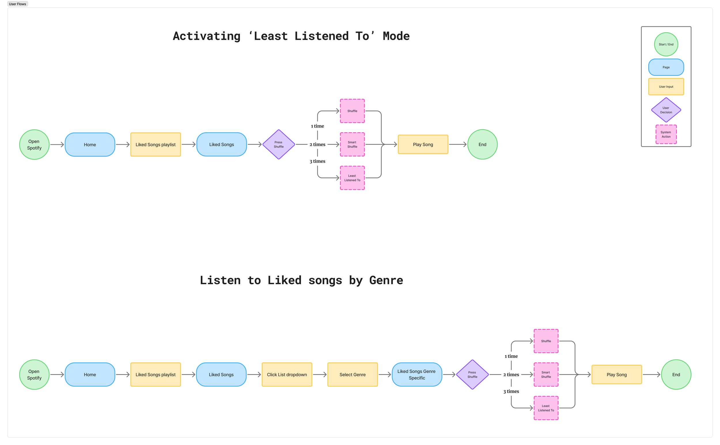 Spotify is one of the most popular music platforms in the world, but even the best products have room for improvement. For this capstone, I designed two desktop playback features to help users get more out of their Liked Songs playlist. This solo project was completed over six weeks and focused on solving a common frustration users experience: hearing the same songs on repeat while others are forgotten.